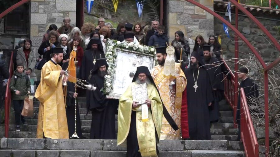 19 Ιανουαρίου 2026 - 6 ΛΕΠΤΑ Η Μονή Αγάθωνος υποδέχτηκε την εικόνα του Αγίου Αχιλλίου, Αρχιεπισκόπου Λαρίσης
